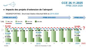 Sur le terrain, malgré un dialogue constant avec l’aéroport, les élus et les autorités, les plans de prévention se succèdent mais sont peu efficaces et les résultats sont très limités. Les maigres avancés sont systématiquement annulées par la croissance du trafic. Les statistiques de l’aéroport montrent que, globalement et depuis 2015, le bruit augmente.