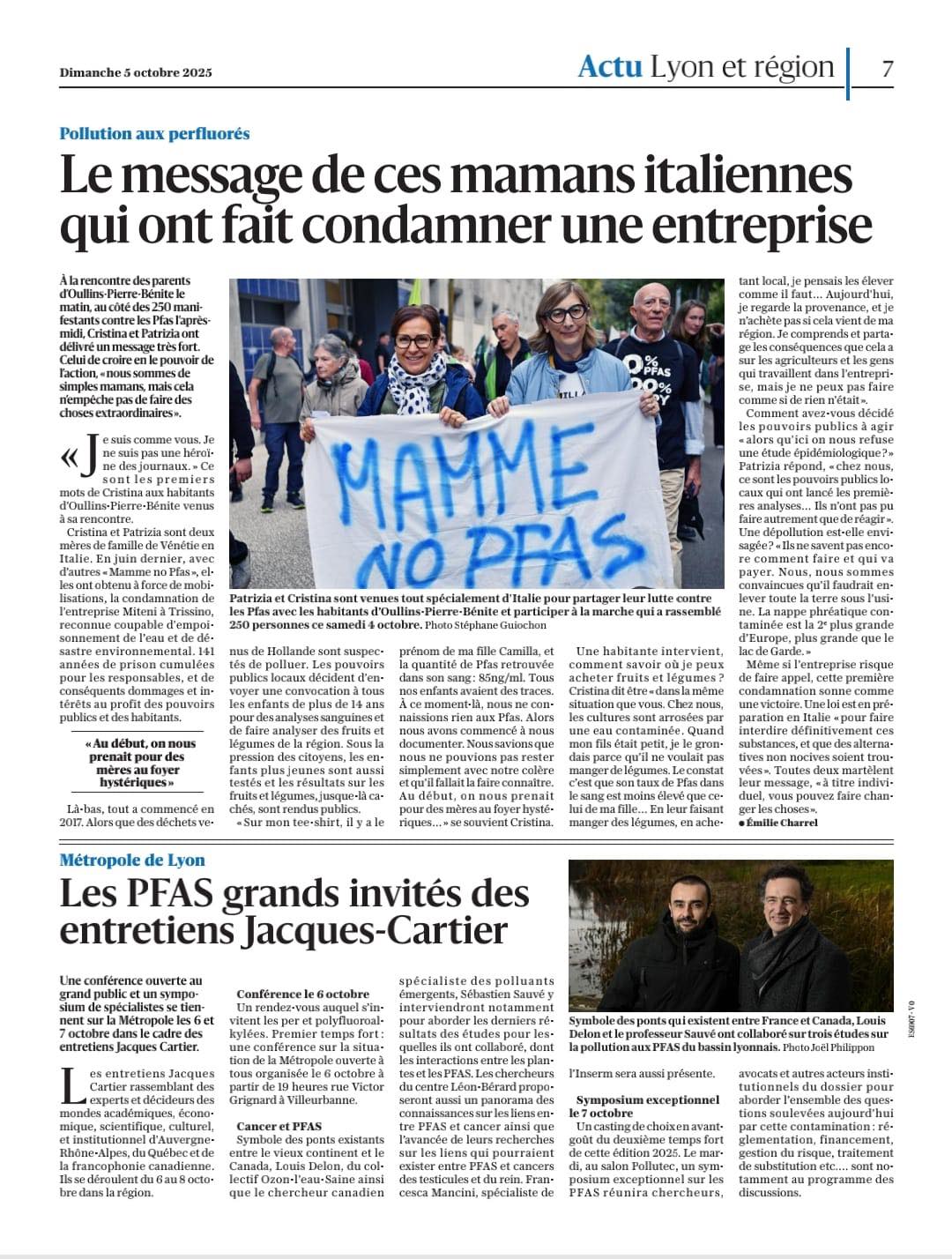 Ce samedi 4 octobre, à la rencontre des parents d’Oullins-Pierre-Bénite le matin, aux côtés des 250 manifestants contre les PFAS l’après-midi, Cristina et Patrizia ont délivré un message très fort. Celui de croire en le pouvoir de l’action, « nous sommes de simples mamans, mais cela n’empêche pas de faire des choses extraordinaires ».