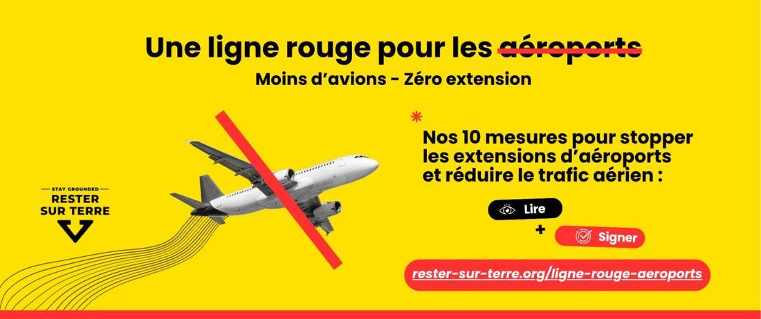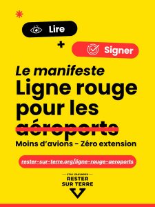 Le réseau Rester sur terre a lancé le 29 avril le manifeste « Une ligne rouge pour les aéroports – Moins d’avions – Zéro extension » à l’international.